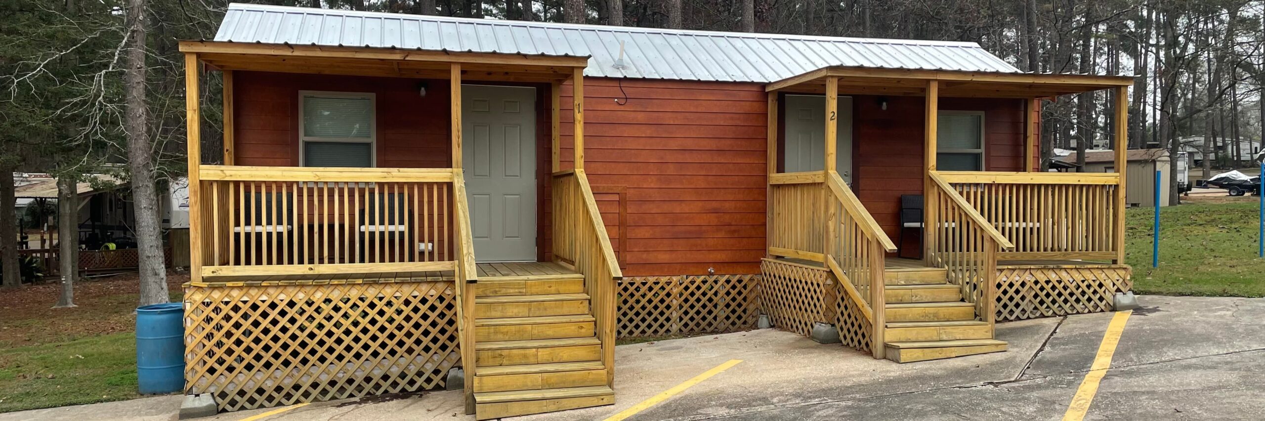 At Stowaway Marina & RV Park, for $125/night or $750/week, you can enjoy one of our Lake Conroe fishing cabins. Amenities include 2 twin beds, TV, minifridge, microwave, full bath, and linens.